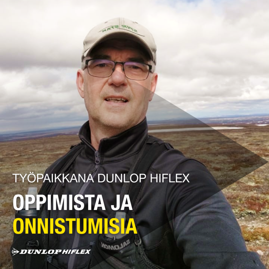 ”Työurani Dunlop Hiflexillä on kestänyt kohta jo 32 vuotta ja se on pitkä aika, joka kuitenkin tuntuu, että vastahan minä aloitin. Olin hakenut Hi-Flex Oy:n Rovaniemen toimipisteeseen töihin, mutta en tullut valituksi. Muistan kuitenkin vieläkin sen hetken, kun puolisen vuotta myöhemmin myyntijohtaja soitti ja tarjosi mahdollisuutta aluemyyntipäällikön hommiin Oulussa (asuin tuolloin vaimoni ja puolivuotiaan tyttäremme kanssa Rovaniemellä). Totta kai kysyin mahdollista tulevaa palkkaa ja kysyin, että saisinko nukkua yön yli, jos en heti osaa päättää 😊.